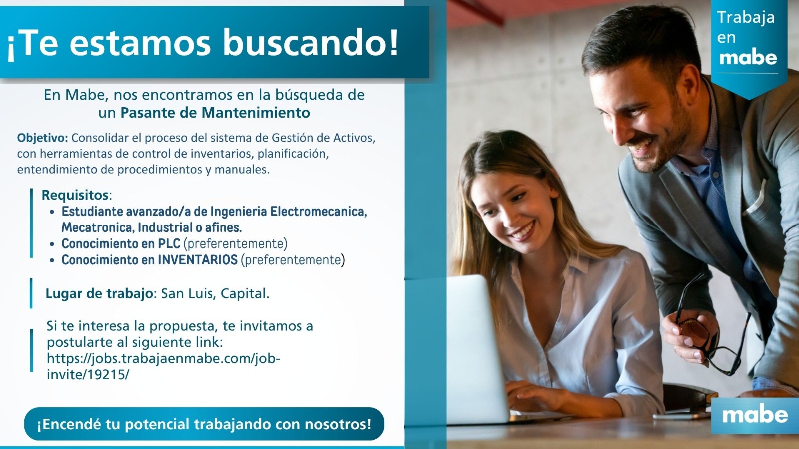 Leer másEn Mabe nos encontramos en la busqueda de un Pasante de Mantenimiento.
