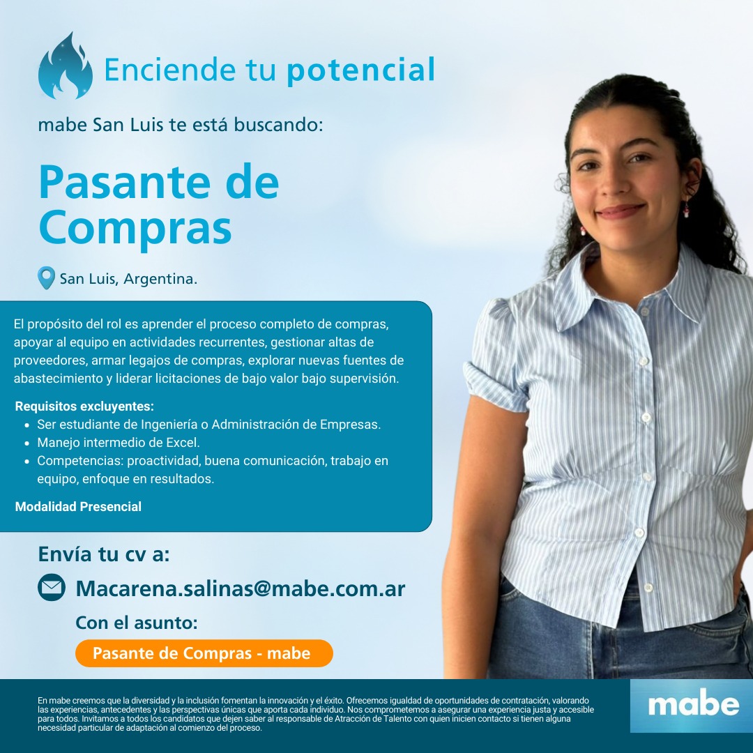 mabe San Luis te esta buscando! PASANTE DE COMPRAS Requisitos...